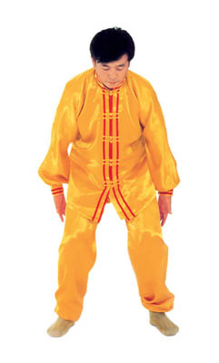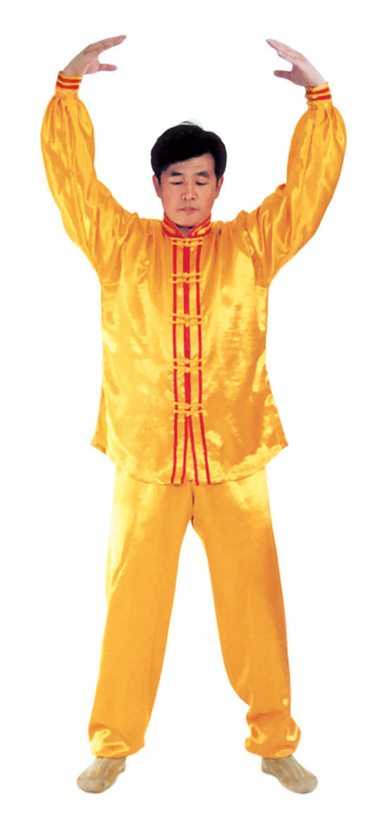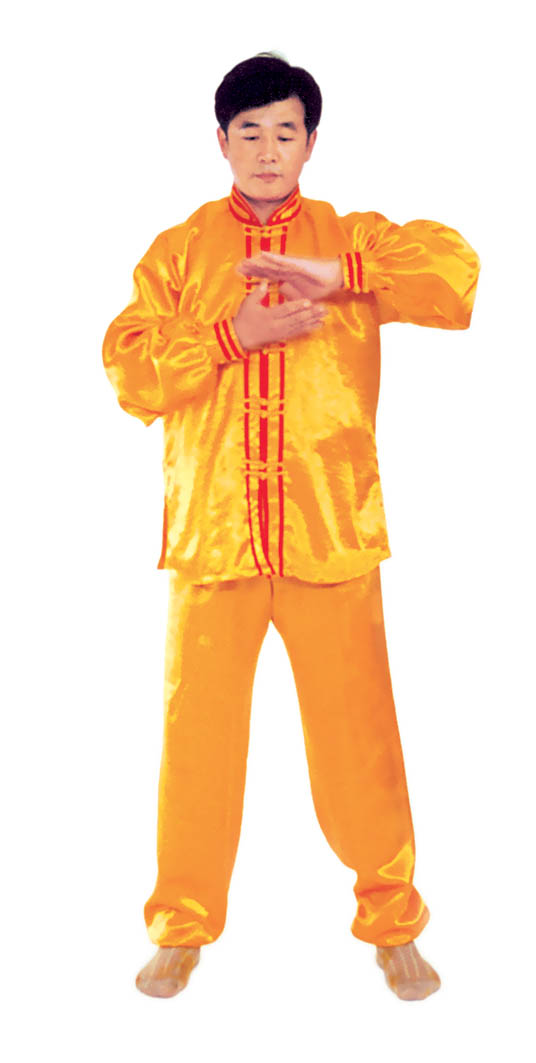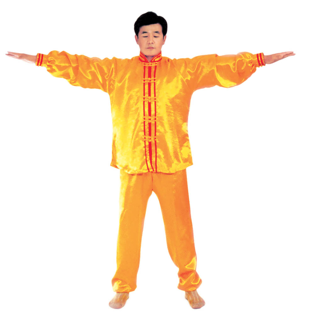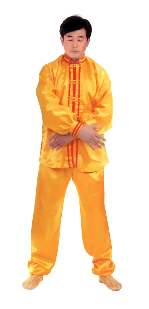 Thế dự bị: Toàn thân thả lỏng, lỏng nhưng không oải, hai chân đứng rộng bằng vai, đứng thẳng tự nhiên, hai chân hơi chùng một chút, đầu gối và háng trạng thái lỏng tự nhiên; hàm dưới hơi thu, lưỡi đặt hàm trên, hàm răng hơi hở một tí, môi miệng ngậm lại, hai mắt hơi nhắm, nét mặt mang ý an hoà.
