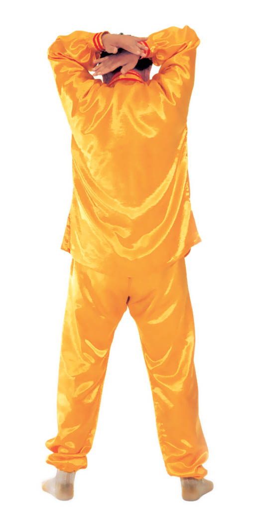Kim hầu phân thân[6]: Bắt đầu từ thế “hợp thập”. Hai tay từ vị trí trước ngực tách khỏi nhau và duỗi sang hai bên, cùng với vai tạo thành hình chữ “nhất”, toàn thân dần dần căng thẳng, đầu dựng lên, chân đạp xuống, hai tay dùng lực căng sang hai bên, lực kéo ra bốn phía (như hình 1.10), kéo căng khoảng 2~3 giây đồng hồ, rồi toàn thân lập tức buông chùng, hai tay trở về “hợp thập” trước ngực.
