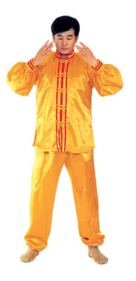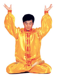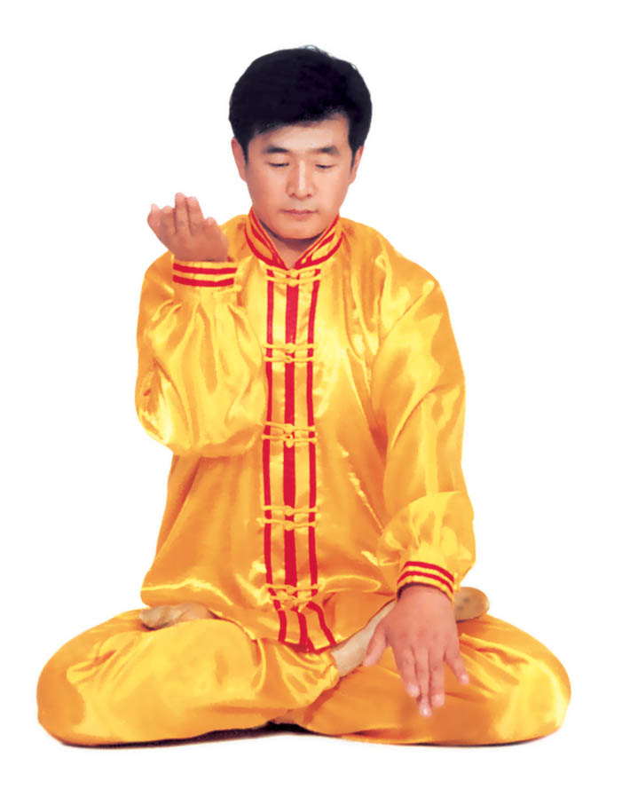 Trước lúc luyện công ý tưởng một chút rằng tự mình [như] là hai thùng rỗng rất cao lớn, sừng sững giữa trời đất, cao lớn không gì sánh được[16]. Khí bên trong [thân] thể thuận theo tay mà [chuyển] động lên xuống, xung lên khỏi đỉnh đầu, trực tiếp tới cực nơi cao nhất của vũ trụ; khí xung xuống sẽ qua từng chân mà xung ra, xung tới cực nơi thấp nhất của vũ trụ. Sau đó khí theo tay mà [chuyển] động, từ hai cực mà quay về trong [thân] thể, rồi lại xuất ra theo hướng ngược lại, lặp lại như thế chín lần. Khi xung quán tới lần thứ chín, thì tay trái (nữ tay phải) ở cực trên mà đợi tay phải (nữ tay trái) đưa lên. Sau đó [hai tay] đồng thời quay về hạ xuống quán nhập vào chỗ cực nơi thấp, [rồi lại] qua thân thể mà xung quán lên, sau khi lặp lại chín lần thì thu khí trở về. Sau khi thu trở lại, thì ở chỗ bụng dưới mà xoay chuyển Pháp Luân theo chiều kim đồng hồ, làm cho khí bên ngoài [thân] thể xoay trở về bên trong [thân] thể, sau đó kết ‘định ấn’[17], luyện công xong thì thu thế chứ không thu công.